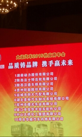 熱烈祝賀創(chuàng)大汽配榮獲大運集團2014年度優(yōu)秀供應(yīng)商